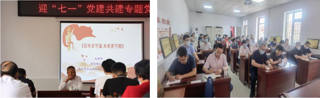 簽約儀式后,王菁華書記為參加此次活動的全體黨員上了一堂題為《百年史可鑒 未來更可期》的黨課。