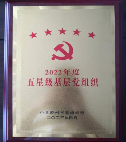 近日,中共膠州市委組織部印發了《關于做好2022年度全市基層黨組織評星定級工作的通知》,經過實地考察及燈塔—黨建在線e支部系統完善情況等綜合評定,中啟膠建集團第一黨支部獲評為“2022年度膠州市五星級黨組織”稱號。