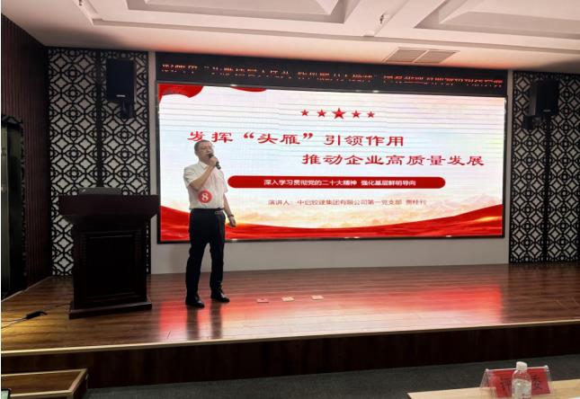 擂臺賽上,中啟膠建集團第一黨支部書記賈桂刊演講主題是《發揮“頭雁”引領作用 推動企業高質量發展》,講述黨建工作深入基層、深入項目工地,大力開展“干一個工程,樹一座豐碑”黨建品牌創建活動,在企業建設中積極發揮思想引導、政治引領作用,為推動企業實現高質量發展奠定堅實基礎。