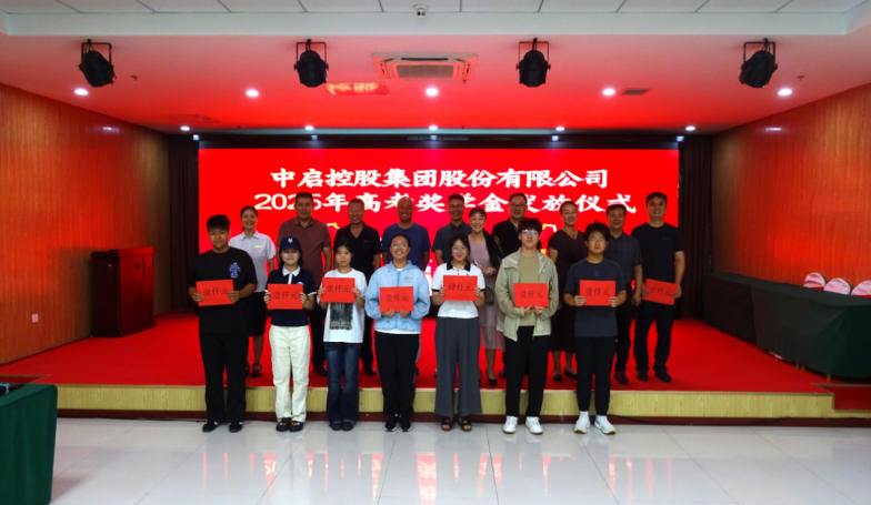8月9日下午,中啟控股集團在中啟大廈二樓多功能廳舉行2025年職工子女高考獎學金發放儀式。集團黨委副書記、監事會主席張桂香參加儀式,共發放獎學金1.2萬元。