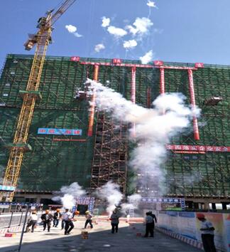 7月30日,陽光明媚,在喧天的鑼鼓聲中,上午9:58分由中啟膠建集團建筑二分公司承建的沙爾呼熱獨立工礦區中蒙醫院工程(二期)建設項目主體封頂儀式隆重舉行。項目建設單位宋福軍書記、包國君主任,監理單位彭靖宇總監、劉永河監理及我集團建筑二分公司經理于東濤、副經理郝書林、副經理賢振濤等有關領導出席封頂儀式。