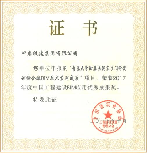 近期該項目再傳喜訊,安全管理方面榮獲 “國家AAA級安全文明標準化誠信工地”,質量管理方面榮獲“2017年度全國工程建設質量管理小組優秀成果”,項目BIM應用成果榮獲“中國工程建設BIM應用優秀成果獎”。上述獎項含金量較高,每年青島市名額基本都在1-2項之間,能夠獲獎實屬不易。未來該工程計劃申報國家質量最高獎項 “魯班獎”。工程施工期間多次受到建設單位、監理單位、上級主管部門的通報表揚和嘉獎。為集團公司在嶗山區、青島市建筑行業內爭奪了榮譽,為集團公司立足青醫市場奠定了良好的基礎。