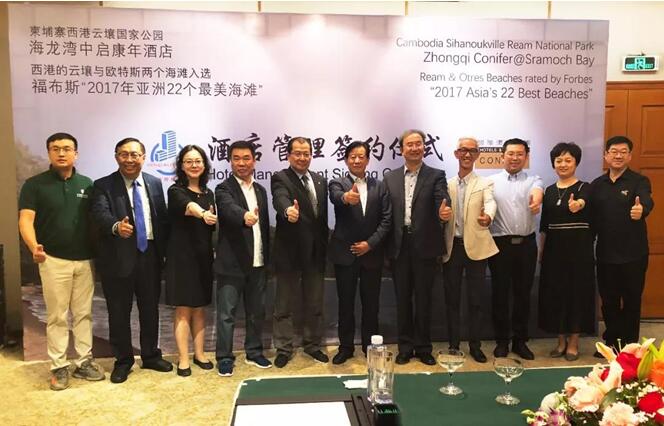 2018年5月28日,中啟控股集團(tuán)股份有限公司與香港康年國際酒店集團(tuán)在深圳簽署柬埔寨海龍灣中啟康年酒店管理合同。中啟控股集團(tuán)股份有限公司董事局主席張啟榮、總裁郭道盛、經(jīng)理鄭守佺、宋燕,香港康年國際酒店集團(tuán)董事長吳廷元、董事楊少春、張俏杰、連振成、李錦、關(guān)明揮、董事兼項(xiàng)目總經(jīng)理蘇志坤等出席柬埔寨海龍灣中啟康年酒店酒店管理簽約儀式。