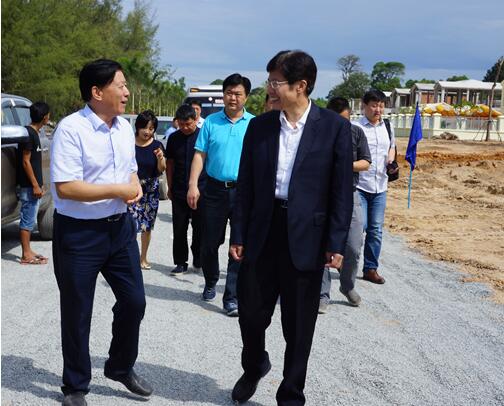 2018年6月1日上午,全國政協(xié)副主席、全國工商聯(lián)主席高云龍率領(lǐng)全國工商聯(lián)代表團一行蒞臨中啟控股集團柬埔寨西哈努克省海龍灣國際旅游度假區(qū)項目進行參觀考察。在中國駐柬埔寨使館經(jīng)商處參贊李岸、集團董事局主席張啟榮等陪同下,高云龍主席一行參觀了正在建設(shè)中的海龍灣國際旅游度假區(qū)項目,并召開現(xiàn)場座談會,聽取項目建設(shè)發(fā)展情況匯報。集團總裁郭道盛匯報了集團柬埔寨投資合作項目建設(shè)發(fā)展情況。