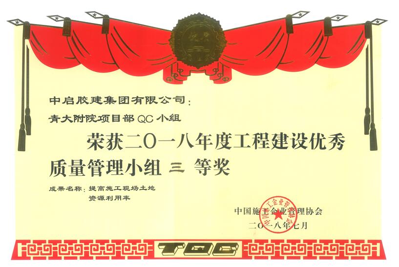 2018年7月,由中國建筑業協會、中國施工企業管理協會舉辦的全國工程建設優秀質量管理小組代表會議分別在寧夏銀川、福建廈門舉行,由中啟膠建集團建筑七公司青大附院項目部QC小組總結的《提高施工現場土地資源利用率》活動課題,分別在中國建筑業協會、中國施工企業管理協會兩個國家級協會上進行了交流、發布,并取得了良好的成績。我公司今年在QC活動方面表現優異,獲得了同時在兩個協會發布的歷史性突破。