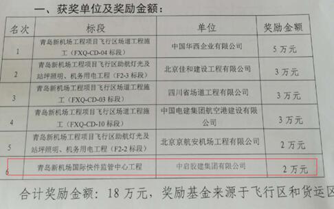 在膠東新機場指揮部開展的百日攻堅創優的工作中,建筑七公司孫兆岐施工的國際快件監管中心項目,充分發揮積極性、主動性和創造性,不斷加大質量、安全、環保等方面的有效管控,在新機場指揮部組織的檢查考核評比中,獲得第六名好成績和2萬元的獎勵,為公司爭得了榮譽,樹立了公司良好的社會形象。為此給予該項目公司內通報表揚,希望繼續發揚成績,再接再厲,再創佳績,同時,其他各單位各項目部要學習先進,積極參與各項活動,不斷加強項目各項管理,為公司爭取更多更大的榮譽,展現企業風采。