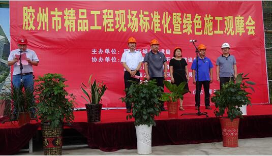 8月15日由膠州市城鄉(xiāng)建設(shè)局主辦的精品工程現(xiàn)場(chǎng)標(biāo)準(zhǔn)化暨綠色施工觀摩會(huì)在我公司施工的中啟大廈工程施工現(xiàn)場(chǎng)隆重舉辦。膠州市城鄉(xiāng)建設(shè)局副局長王世梅,膠州市經(jīng)濟(jì)技術(shù)開發(fā)區(qū)建設(shè)局局長姜大全,膠州市建筑工程質(zhì)量監(jiān)督站站長于清正,青島海大工程監(jiān)理咨詢有限公司董事長于洪波,中啟控股集團(tuán)總裁郭道盛,中啟控股集團(tuán)常務(wù)副總裁張?jiān)霾阮I(lǐng)導(dǎo)以及全市施工、監(jiān)理單位的質(zhì)量安全分管領(lǐng)導(dǎo)、機(jī)構(gòu)負(fù)責(zé)人、項(xiàng)目負(fù)責(zé)人、技術(shù)負(fù)責(zé)人等220余人參加了本次大會(huì)。