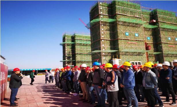 10月17日上午由青島高新區建設局主辦的高新區建筑業風險分級管控和隱患排查治理觀摩會在我公司施工的青島中學人才公寓配建項目施工現場隆重舉辦。高新區工程質量與安全監督站站長王進文,井光偉、李波部長、青島高新區房地產開發有限公司副總于明剛、李帥、中啟膠建集團副總經理劉堯等領導以及全區建設、施工、監理單位的公司負責人、項目經理、安全經理等200余人參加了本次大會。
