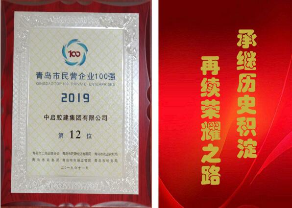 再續榮耀之路!中啟膠建集團喜獲青島民企百強第12位