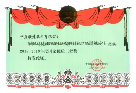 國家優質工程獎獎杯及榮譽證書