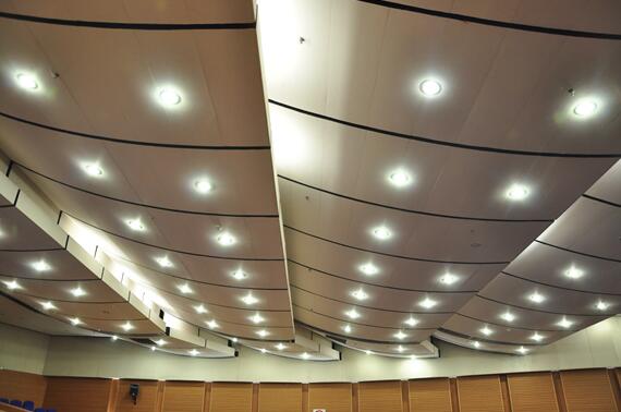 該工程弧形網架屋面,QC小組人員奮力攻關,克服了定位難,節點復雜的困難,研發出了弧形網架高強玻纖巖棉保溫板施工工法,取得良好的質量效果,該方法總結的成果獲得2015年度青島市QC成果二等獎。該工程采用的天然及人造塊材精加工與施工等多項新技術,達到國內領先水平。