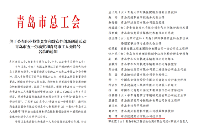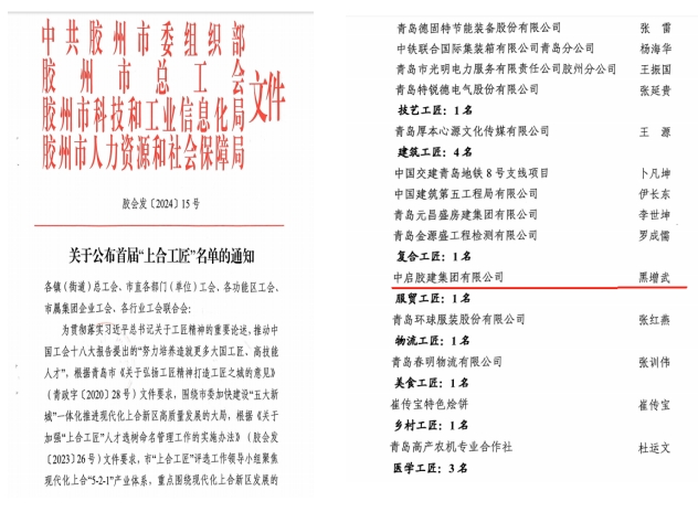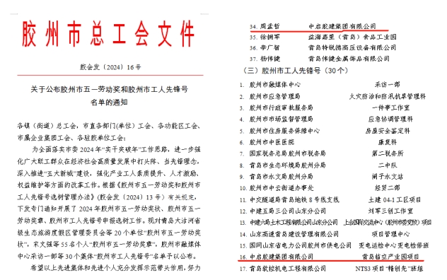 值此“五一”國際勞動(dòng)節(jié)來臨之際,4月29日上午,膠州市慶祝“五一”國際勞動(dòng)節(jié)大會(huì)暨膠州市總工會(huì)第十三屆委員會(huì)第二次全體會(huì)議在市會(huì)議中心四樓多功能廳召開。會(huì)上表彰了2024年膠州市獲得各級榮譽(yù)的先進(jìn)集體和個(gè)人。集團(tuán)斬獲多項(xiàng)殊榮,集團(tuán)黑增武同志榮獲“首屆上合工匠”榮譽(yù)稱號,高清同志榮獲“青島工匠”和“青島市五一勞動(dòng)獎(jiǎng)?wù)隆睒s譽(yù)稱號,周孟哲同志榮獲“膠州市五一勞動(dòng)獎(jiǎng)?wù)隆睒s譽(yù)稱號,青島臨空產(chǎn)業(yè)園項(xiàng)目班組榮獲“膠州市工人先鋒號”稱號。