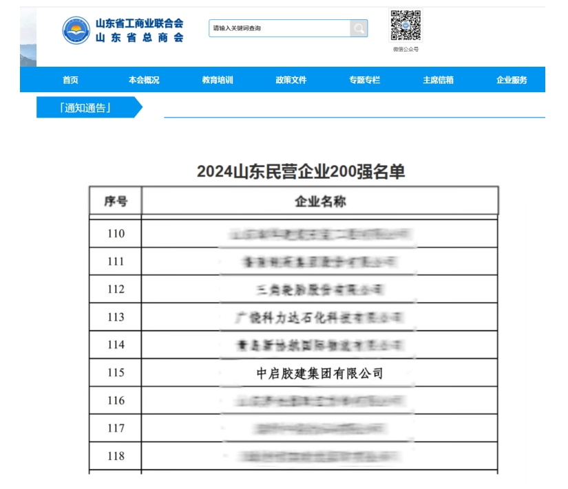 近日,2024山東民營企業(yè)百強系列榜單發(fā)布,公司榮登“2024山東民營企業(yè)200強”。