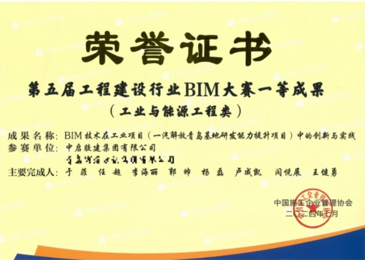 8月22日至23日,中國施工企業管理協會在成都舉辦了第九屆工程建設行業互聯網大會,會上公布了第五屆工程建設行業BIM大賽成果,集團公司工業項目一汽解放青島基地研發能力提升項目榮獲一等成果。