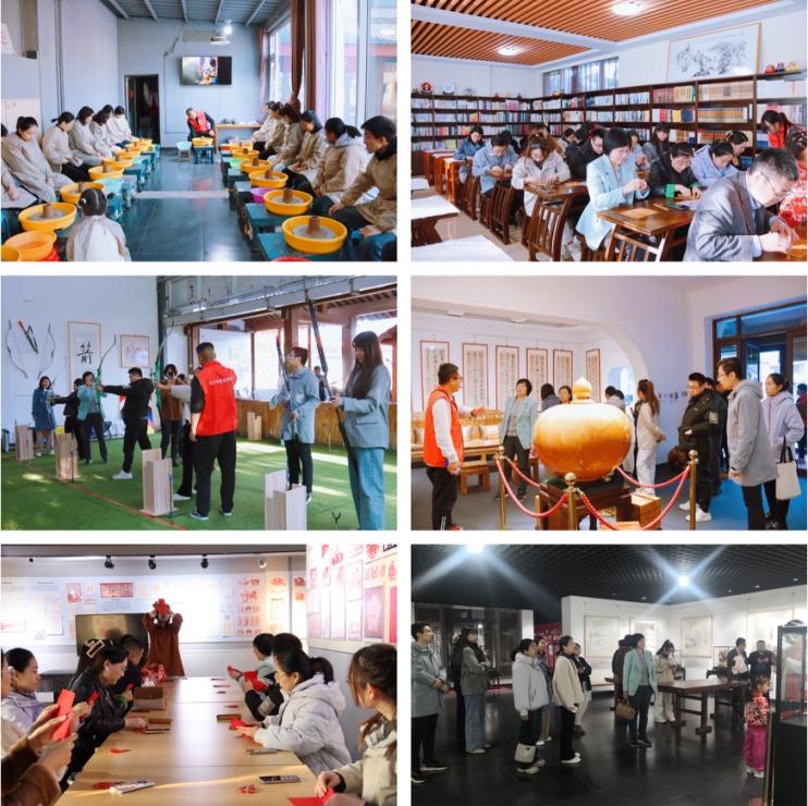進(jìn)入園內(nèi),職工們便被園內(nèi)充滿國(guó)學(xué)文化底蘊(yùn)的氛圍所熏陶。在講解員的帶領(lǐng)下,大家參觀了黑陶藝術(shù)館、孔子學(xué)堂、非遺館、臺(tái)灣藝術(shù)館、少海美術(shù)館等,親身體驗(yàn)了黑陶制作、韋編三絕、射箭投壺、剪紙等。
